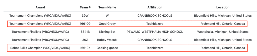 On November 8, 2025, TechBlazers teams once again shone on the global stage at the VEX Robotics Competition in the US region!